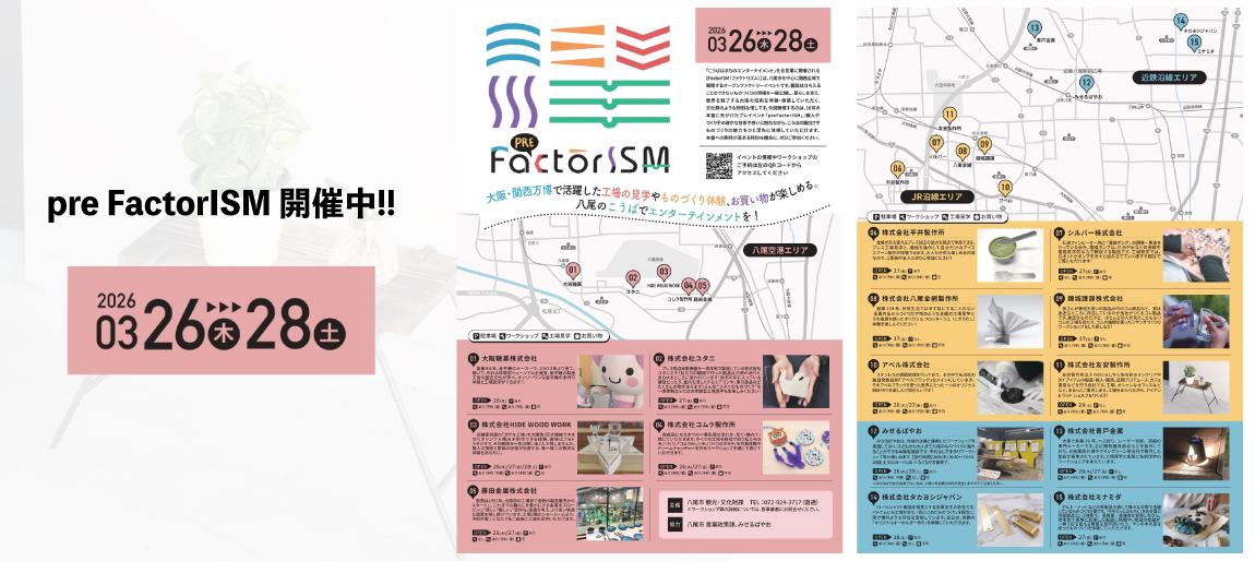 【3月26〜28日 pre FactorISM】八尾市内15ヶ所で工場見学/ワークショップを開催...