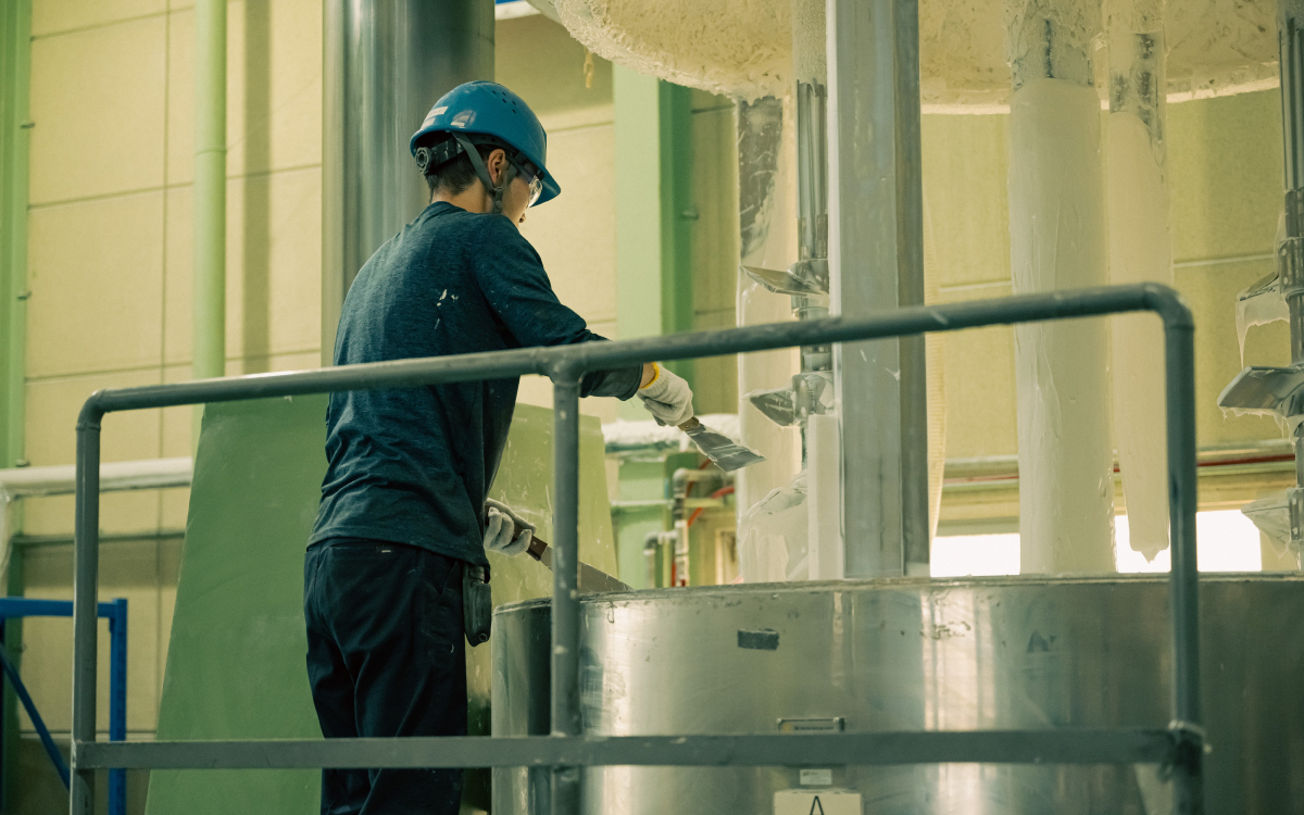 ものづくりを次の世代につなぐため、若手社員の育成や現場体験の機会づくりに力を入れています。製品開発の裏側を知ってもらう工場見学や、風通しの良いチームづくりに加え、社員食堂をラウンジのようにリフォームしたり、寝転んで休憩できるスペースを作ったりするなど、働きやすい職場環境も整備中です。シャープ化学を知って「ここで働いてみたい」と思ってくれる若い方との出会いを楽しみにしています。